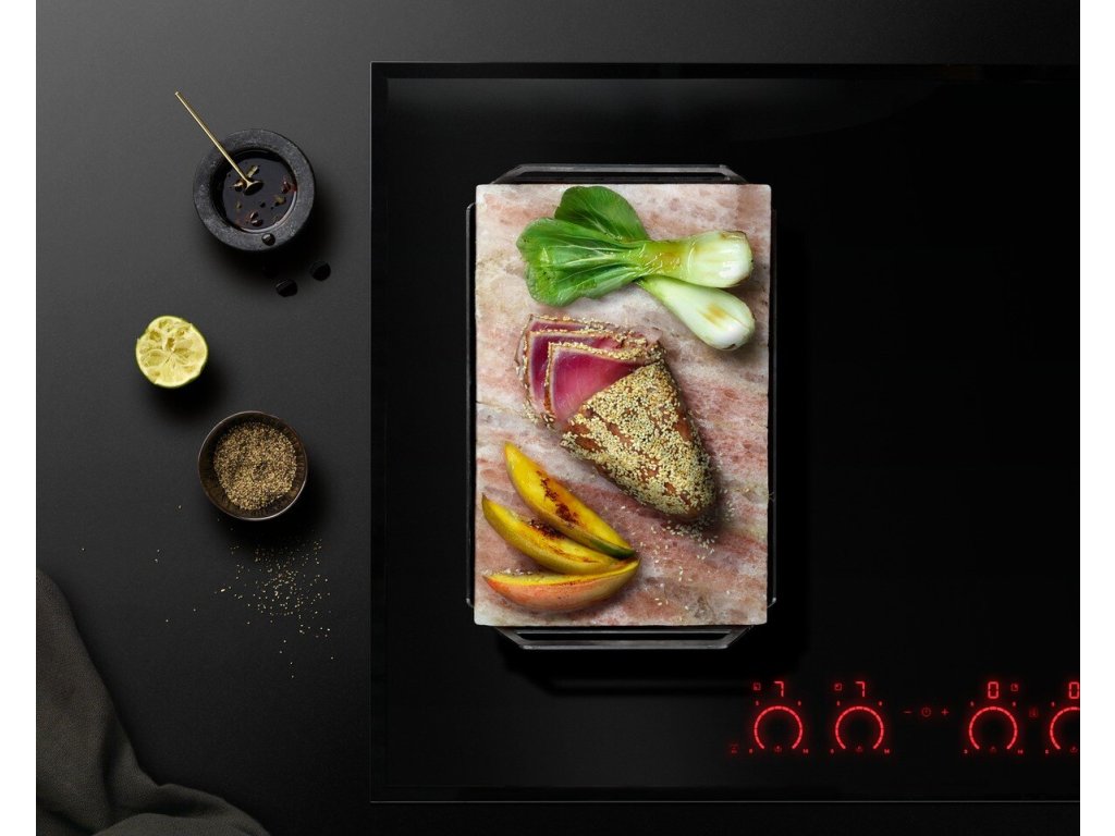 Solnou desku AEG lze vložit do ocelového rámu, který zajišťuje dokonalý rozvod tepla. Rázem tak můžete připravovat pokrmy na kterékoliv varné desce nebo v troubě. Bez rámu je vhodná na gril. Solnou desku je nutné vždy zahřívat pozvolna.