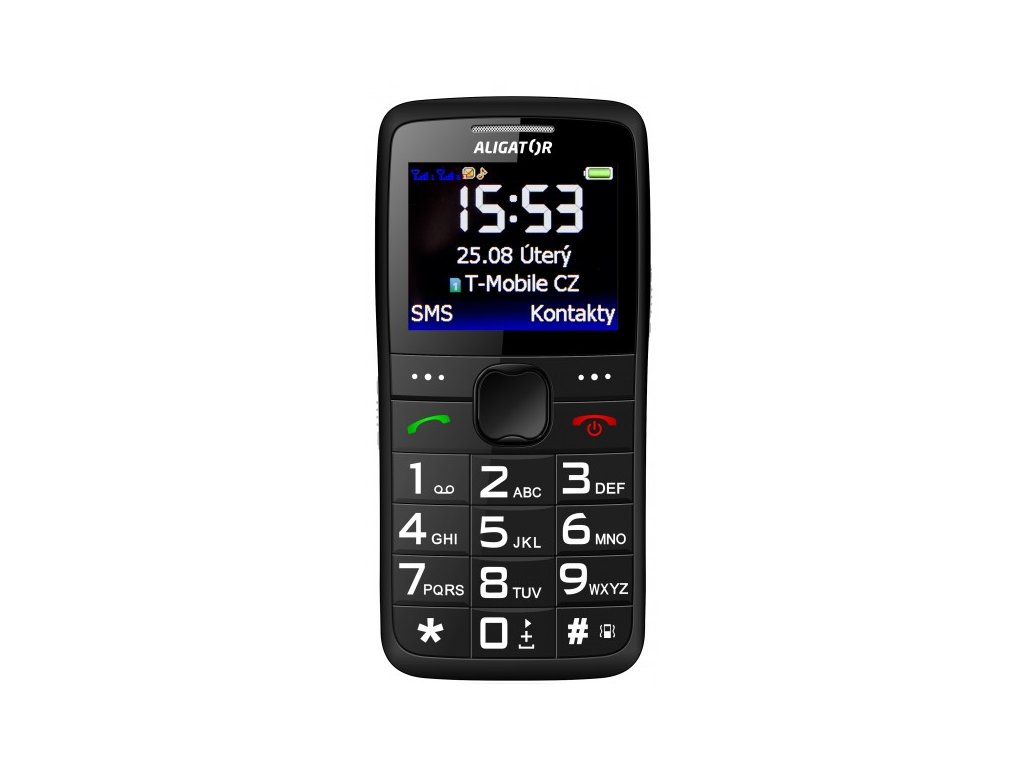 ALIGATOR A675BK telefon senior černý nabíjecí staniceJednoduchý, účelný a spolehlivý
