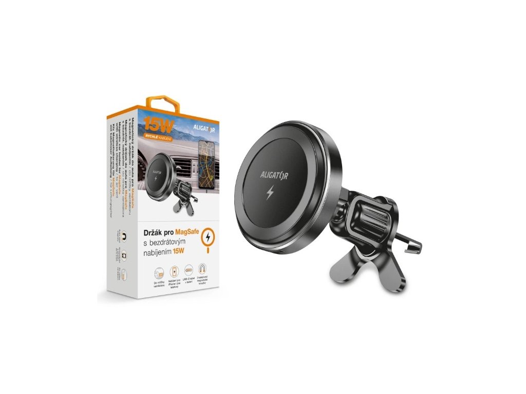 ALIGATOR AMS05BK držák do auta MagSafe 15W černý do vent.mřížkyKlíčové vlastnosti