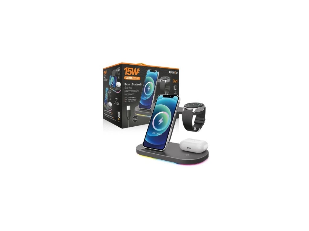 ALIGATOR AS04BK bezdrátová Qi dokovací stanice 15W Apple černáBezdrátová nabíjecí stanice Aligator Smart Station S