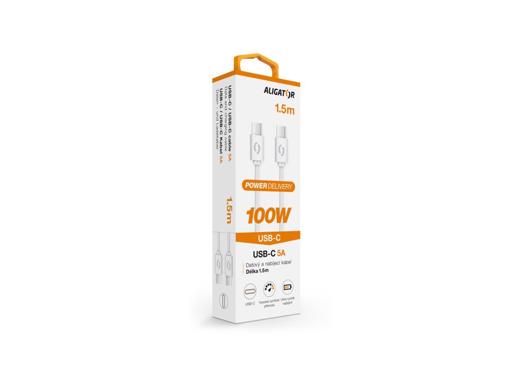 ALIGATOR kabel USB-C/USB-C power 5A 100W 1,5m bílý DATKP47