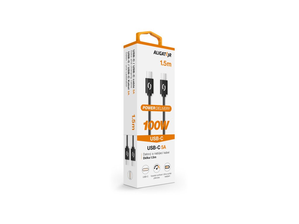 ALIGATOR kabel USB-C/USB-C power 5A 100W 1,5m černý DATKP46
