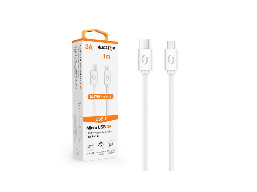 ALIGATOR kabel USB-C/USB-Micro power 3A 1m bílý DATKP42