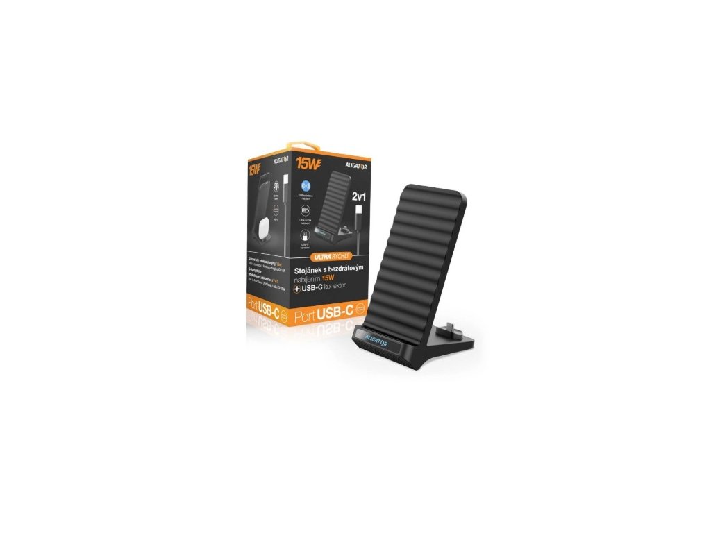 ALIGATOR stojánek Qi bezdrátový 15W USB-C černá CHQ001Chytrý, bezdrátový a 2v1