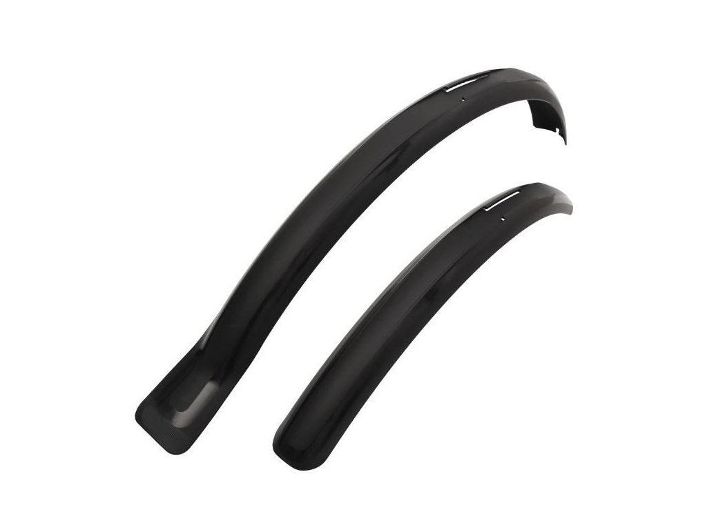 Univerzální sada blatníků s montáží pomocí kovového úchytu a šroubem přes drážku.