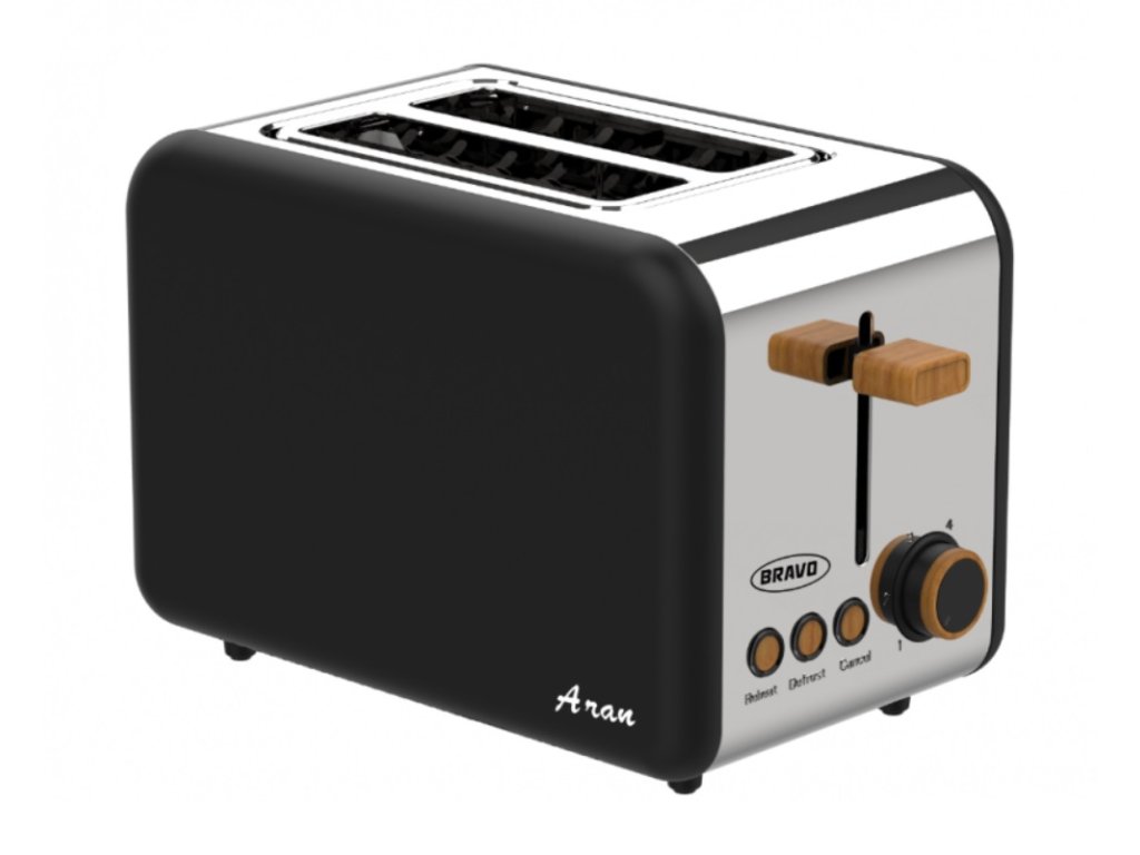 BRAVO B 4935 ARAN topinkovač černý dekor dřevoNerezový topinkovač Bravo B-4935 pro přípravu 2 kusů topinek.