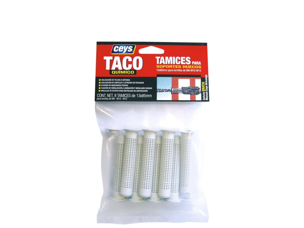 CEYS sítko na chemickou kotvu 9x50mm 8ksPolypropylenová sítka o rozměru 13×86 mm a 9×50 mm.