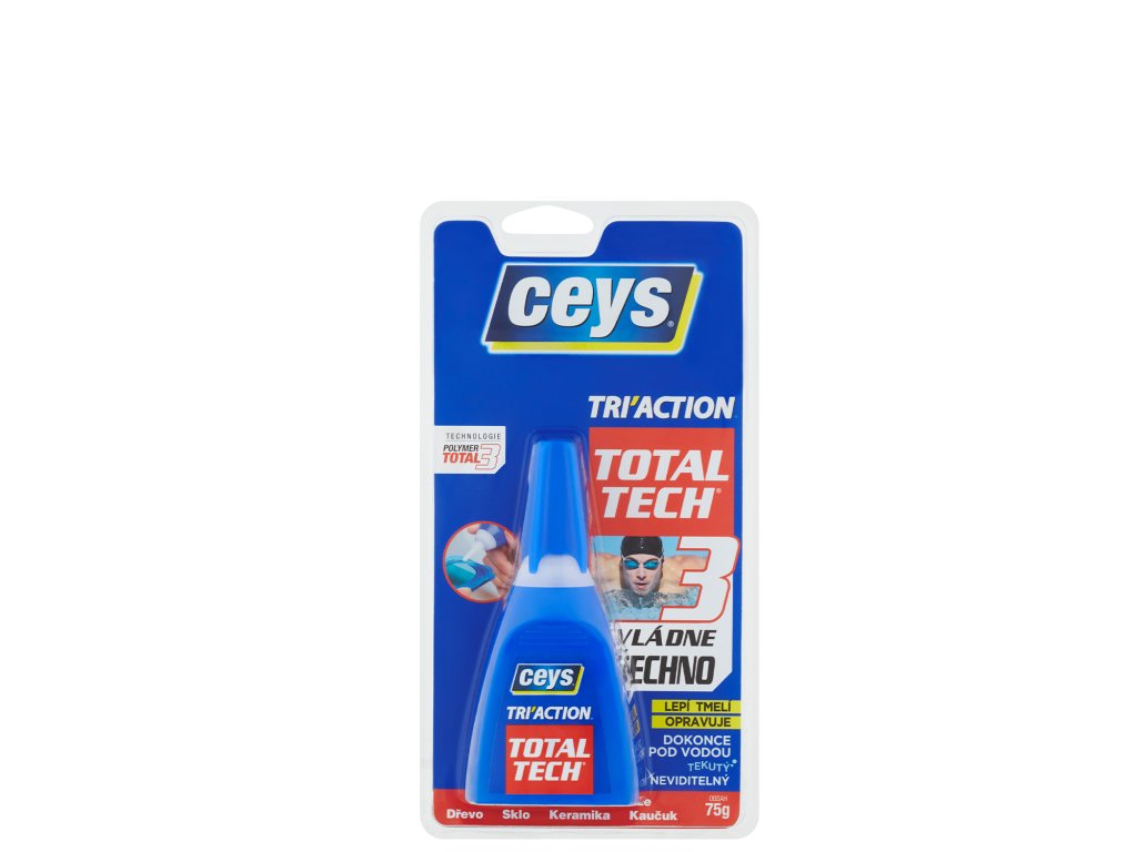CEYS TOTAL TECH 75g tekutý transparentní lepí tmelí opravujeCeys Tri’Action s technologií Total Tech je výrobek 3v1