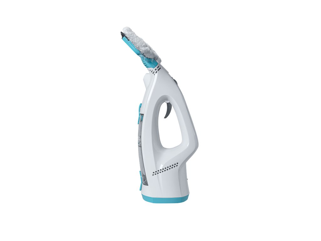 Nádobku na čistou vodu naplňte a přidejte malé množství prostředku na mytí oken. Stiskněte páčku rozprašovače a nastříkejte roztok na místo, které chcete vyčistit. Pomocí speciální textilie z mikrovlákna, která má vynikající čisticí vlastnosti a je mimořádně jemná a měkká, okna umyjte. Posledním krokem vysavač odsaje znečištěnou vodu z povrchu do nádržky. Výsledek? Dokonale čistá okna. Gumová stěrka okna navíc vyleští. Díky elektrickému odsávání zůstanou okna čistá a bez jediné kapky špinavé vody.