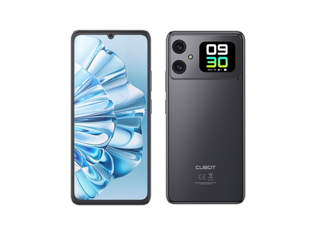 Cubot A20 zaujme na první pohled. Elegantní tělo skládající se ze skla a plastu je dostupné ve dvou barvách — klasická černá a modrá — takže si každý najde to své. Kromě velkého 6,75” IPS HD+ displeje s 90 Hz obnovovací frekvencí má telefon také menší 1,83” dotykový displej na zadní straně, který ukazuje upozornění, umožňuje ovládat hudbu nebo rychle zkontrolovat čas a stav baterie.