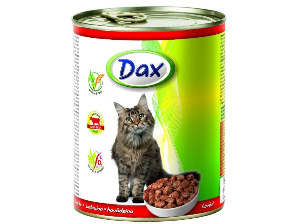 DAX konzerva pro kočky 830g hovězí 10712Kompletní mokré krmivo pro kočky.