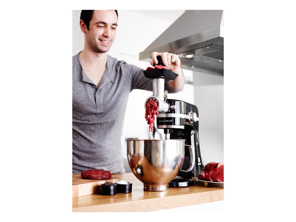 - Multifunkční robot dokáže hnětat, míchat, mixovat, šlehat, strouhat, krájet a umlýt maso