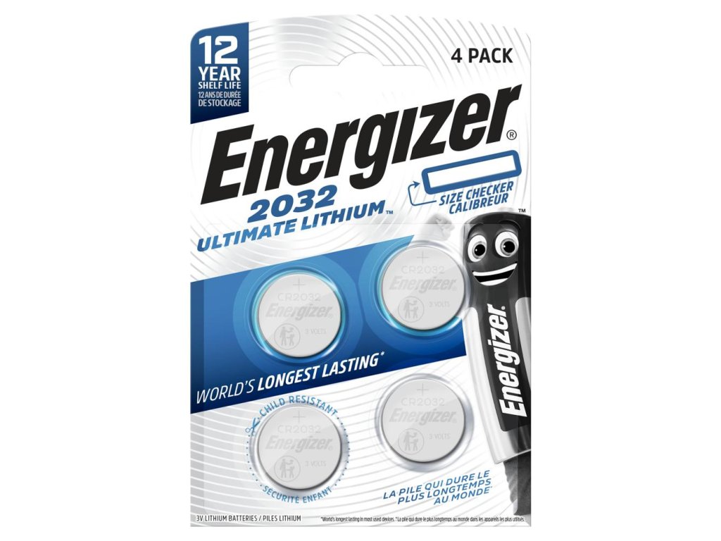 ENERGIZER CR 2032 FSB4 performance baterie 4ksSada obsahuje 4 kusy lithiových knoflíkových baterií typu CR2032 značky Energizer.