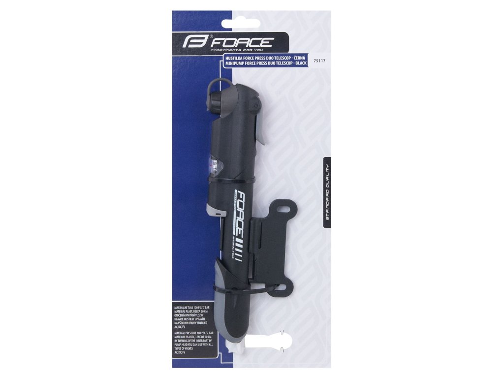 FORCE hustilka MANO BASIC duo teleskp plast černáDUOPÍST na všechny druhy ventilků (AV - moto, FV - galuskový, DV - klasický)