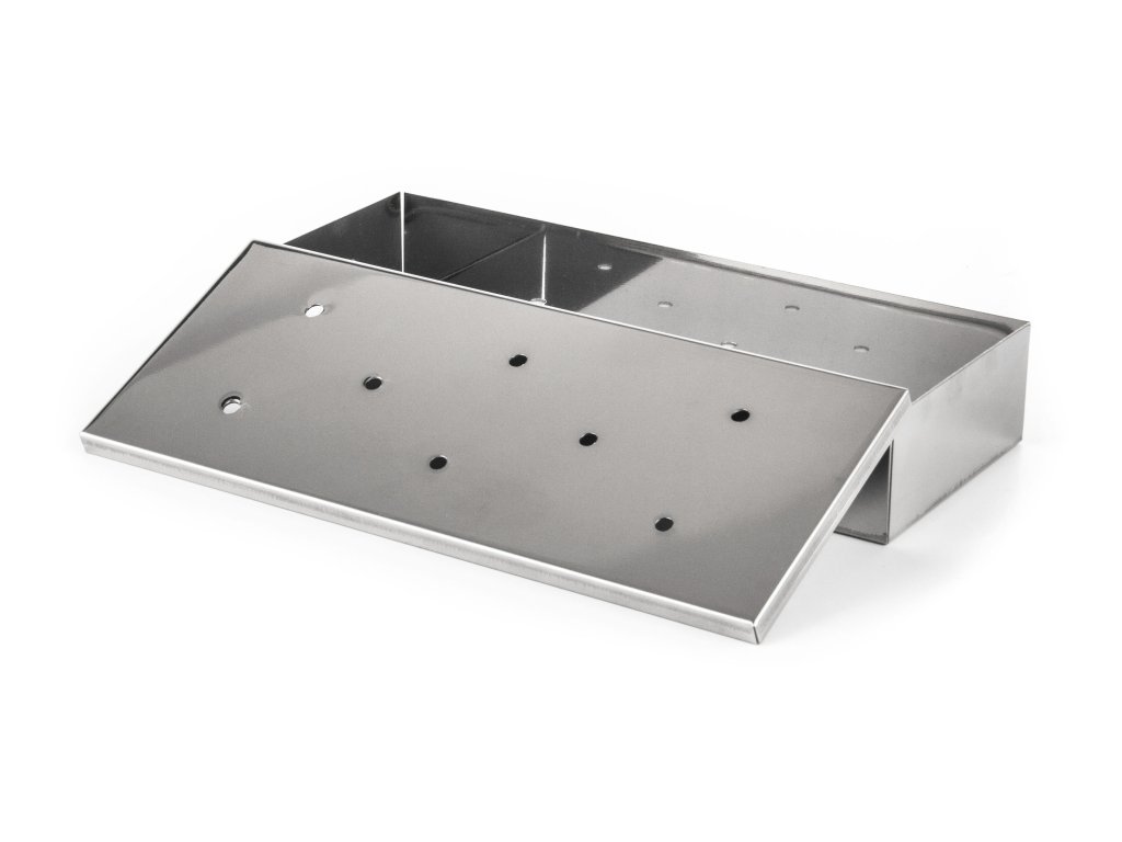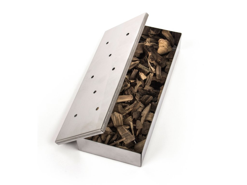 Důmyslně řešená nerezová krabička s víkem se po naplnění dřevěnými lupínky nebo štěpkami zavře a vloží mezi hořáky plynového grilu, případně na rošt grilu na dřevěné uhlí nebo grilu elektrického.