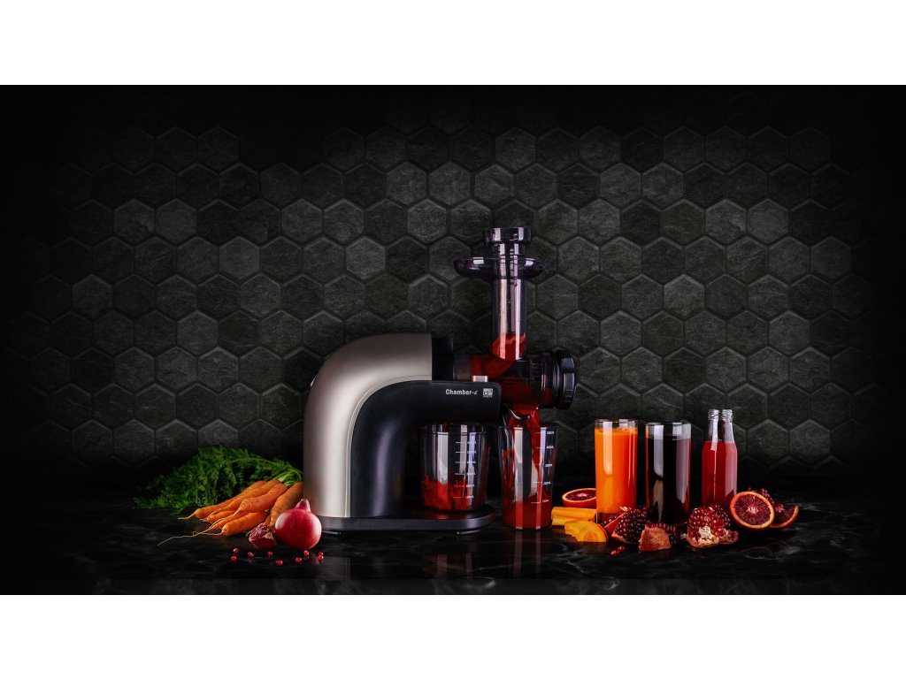 Odšťavňovač G21 Chamberi horizontal s ovocem, zeleninou a vymačkanou šťávou