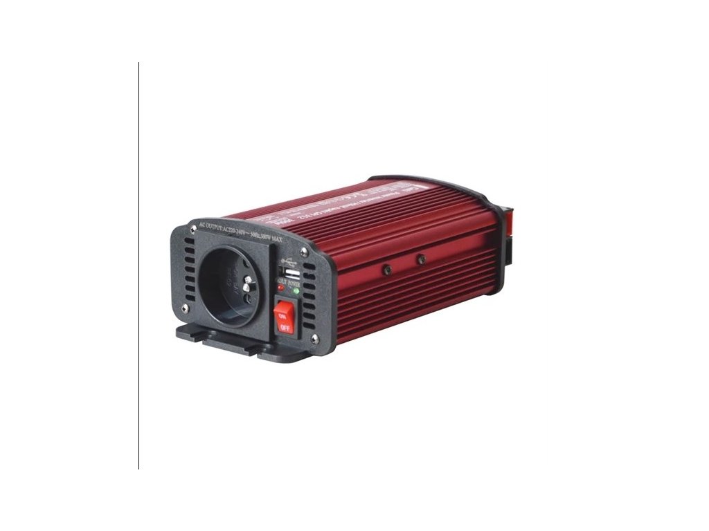 GETI GPI 312 měnič napětí 12V/230V 300W CZ+USBInvertor - Měnič vytváří ze stejnosměrného napětí 12V střídavé napětí 230V . To umožňuje připojení nejrůznějších spotřebičů 230 V ke zdroji napětí jako např. v autě, na člunu, u solárních zařízení na chatách nebo při kempování. Ideální pro připojení digitální kamery, mobilního telefonu, notebooku, tiskárny, lampy, CD/DVD přehrávače, rádia atd s maximálním příkonem do 300W. Měnič je rovněž vybaven USB výstupem pro napájení různých zařízení přes rozhraní typu USB 2.0 . Přístroj obsahuje ochranu proti opačné polaritě, nízkému/vysokému napětí, zkratu, přetížení, přehřátí a vysokému/nízkému napětí baterie. Zvlnění výstupního napětí má tvar modifikované sinusoidy.