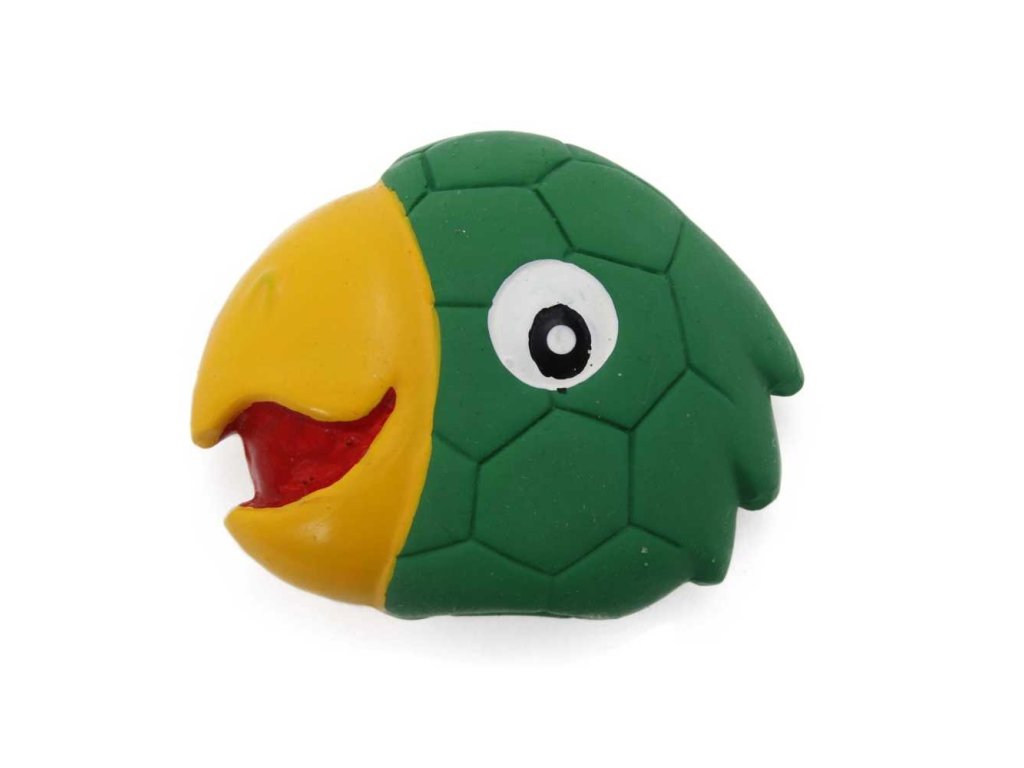 hračka pro psy latex Papoušek hlava s pískadlem