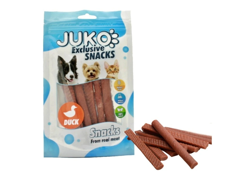 JUKO SNACKS 70g duck pressed stickKachní masové tyčinky – lahodná odměna pro každého chlupáče.