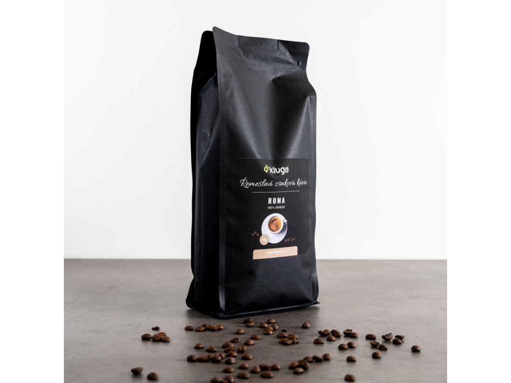 KLUGE Roma 1kg – jemná 100% Arabica s tóny ořechů a karamelu.Sběr: 100% Arabica - Brazílie
