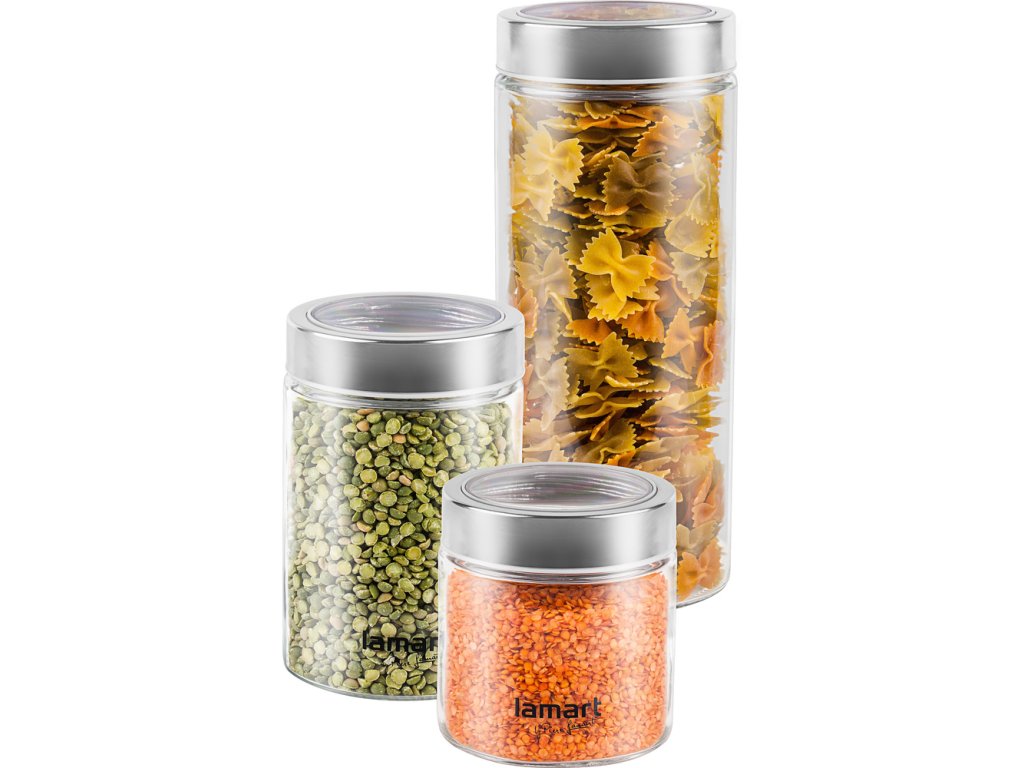 LAMART LT6010 SET 3 dóz kulatých sklo/nerezPraktická a spolehlivá sada dóz pro skladování potravin
