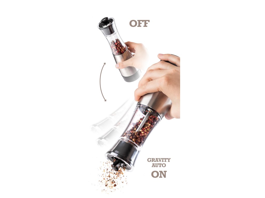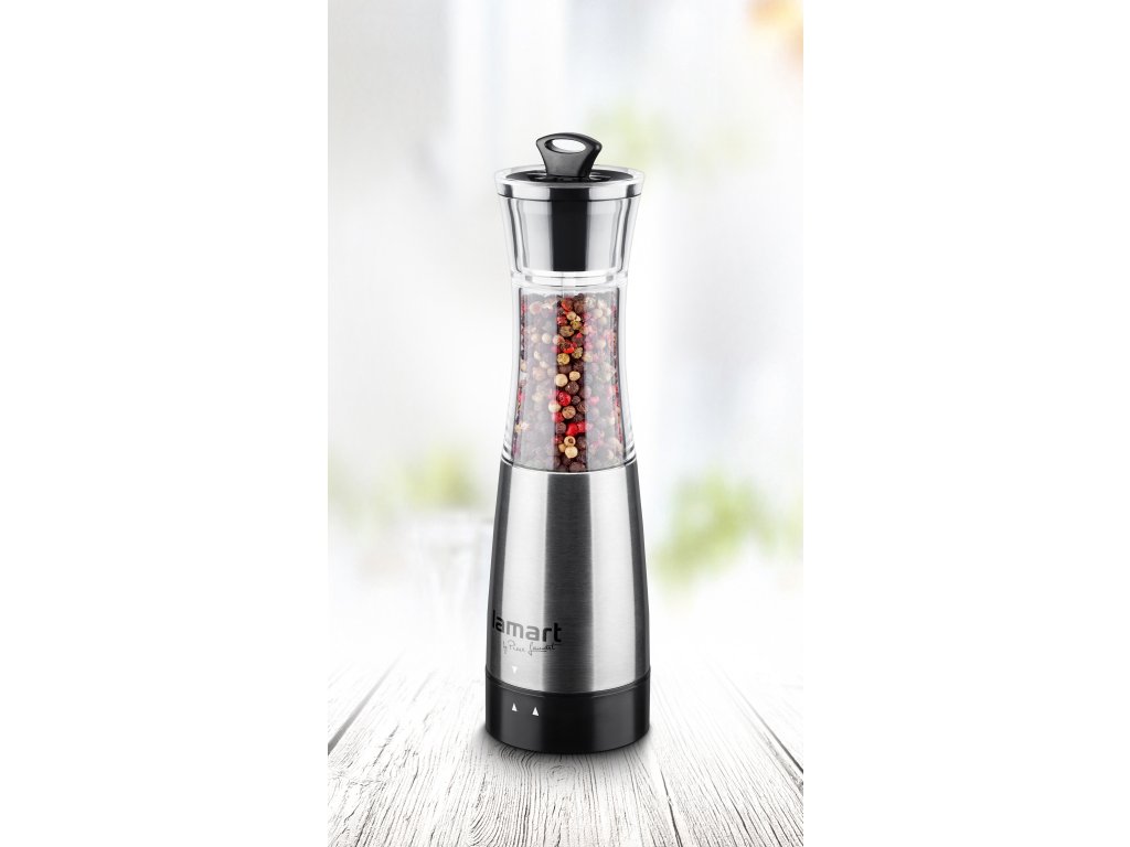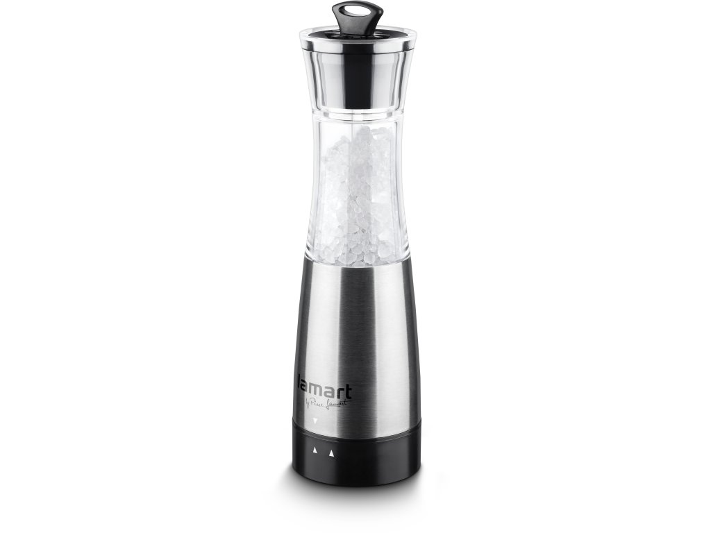 LAMART LT7012 mlýnek elektrický GRAVITYMlýnek na koření/pepř/sůl je vyroben z nerezavějící oceli a plastu s keramickým mlecím mechanismem s nastavitelnou hrubostí mletí