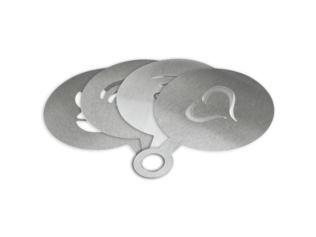 Součástí setu jsou také 4 ks kávových šablon s kvalitního nerez materiálu