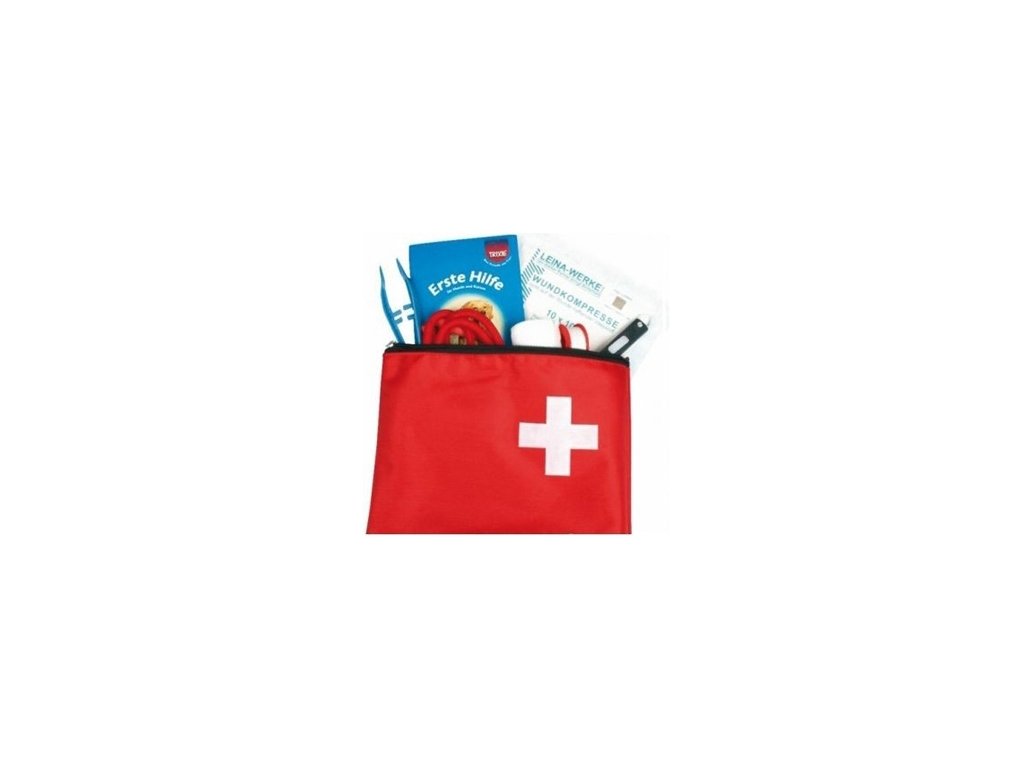 Součástí je manuál ilustrující postup poskytnutí první pomoci a použití jednotlivých elementů lékárničky.