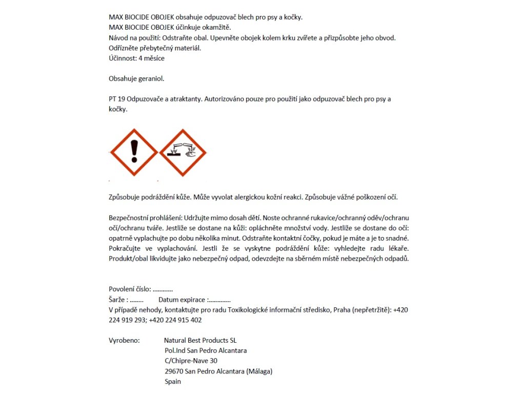 obojek pro kočky 42cm repelentní Max BiocidePřírodní repelentní obojek pro kočky.
