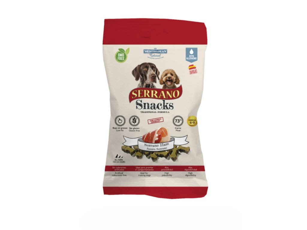 Pamlsek pro psy Serrano šunka 100g.Lahodný pamlsek pro psy ve tvaru malých kostiček se serrano šunkou a rýží.