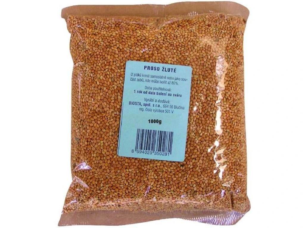 Proso žluté Biokron 1kg.Ke krmení hlavně ptáků nebo malých hlodavců, buď samostatně nebo jako součást zobů, kde může tvořit až 80%