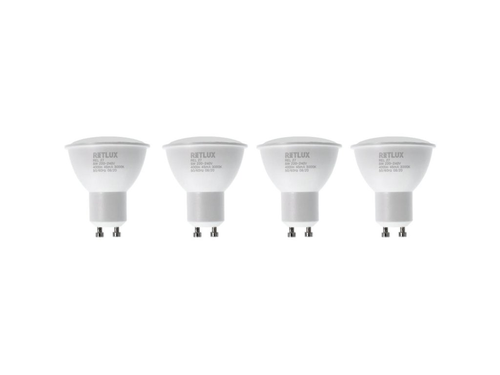 RETLUX REL 27 LED žárovky GU10 4x5W WW.Ekonomická sada 4ks LED žárovek