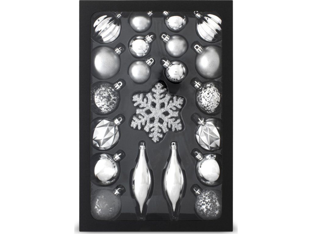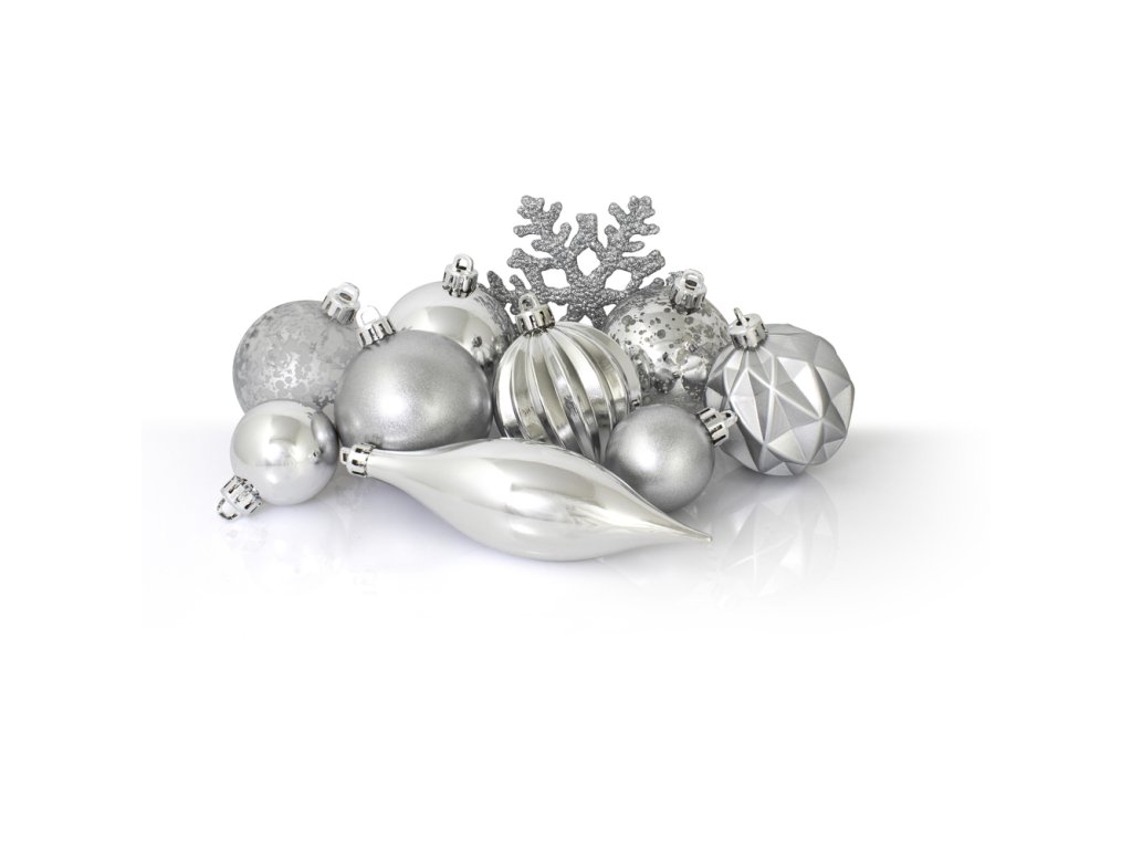 RETLUX RXL 448 sada ozdob 25ks stříbrnéSada 25 kusů vánočních ozdob v tradiční stříbrné barvě