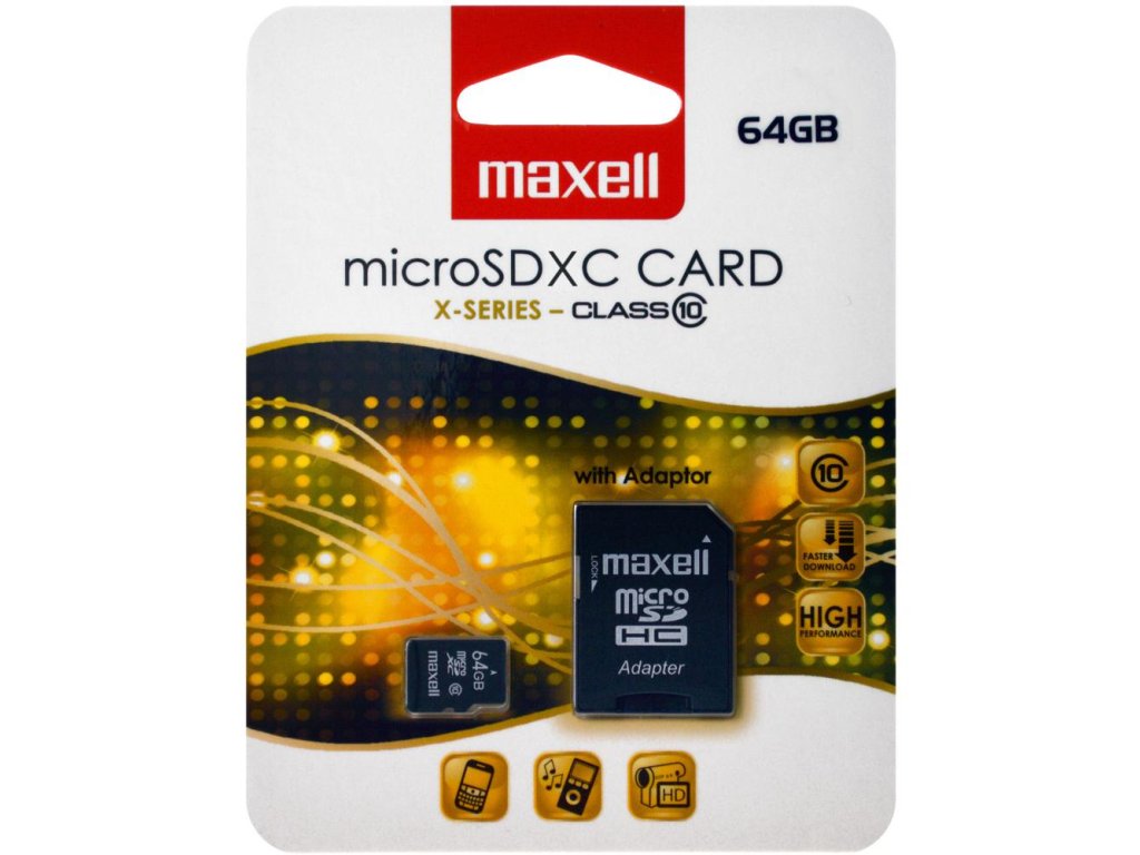 SD micro 64GB MAXELL CL10 + adaptérPaměťová karta