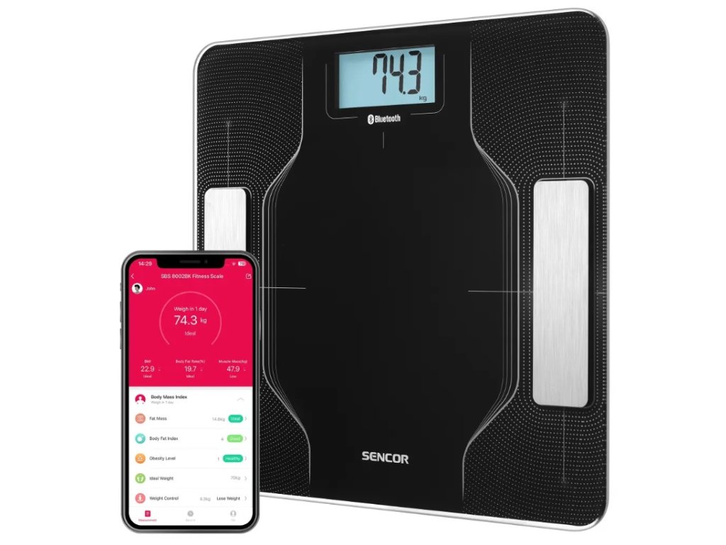 Inspirujte se ke zdravějšímu životnímu stylu s chytrou fitness váhou SENCOR SBS 8002BK. Tato digitální váha nejen změří vaši hmotnost, ale také index tělesné hmotnosti (BMI), procento vody, svalovou a kostní hmotu. Aplikace SENCOR HOME vám umožní sledovat váš pokrok a nastavit si cíle příjmu kalorií. Využívejte váhu s ostatními členy rodiny díky možnosti nastavení různých uživatelských profilů.