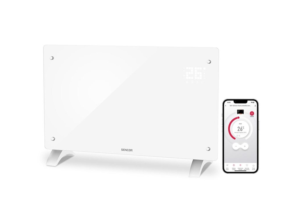 SENCOR SCF 4240WH Konvektor bílý 5-50°C Wi-Fi 2000WChytrý skleněný konvektor WI-FI
