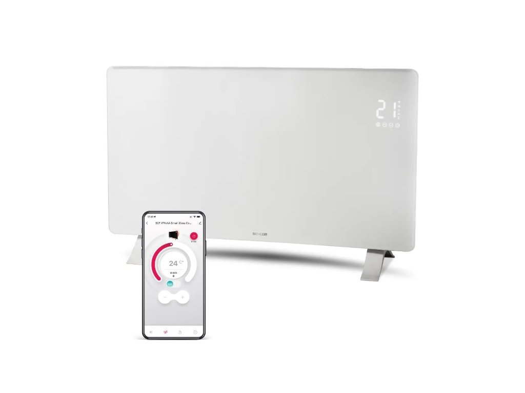 SENCOR SCF 4740WH Konvektor bílý 5-45°C Wi-Fi 2400WElegantní moderní konvektor s ovládáním v aplikaci