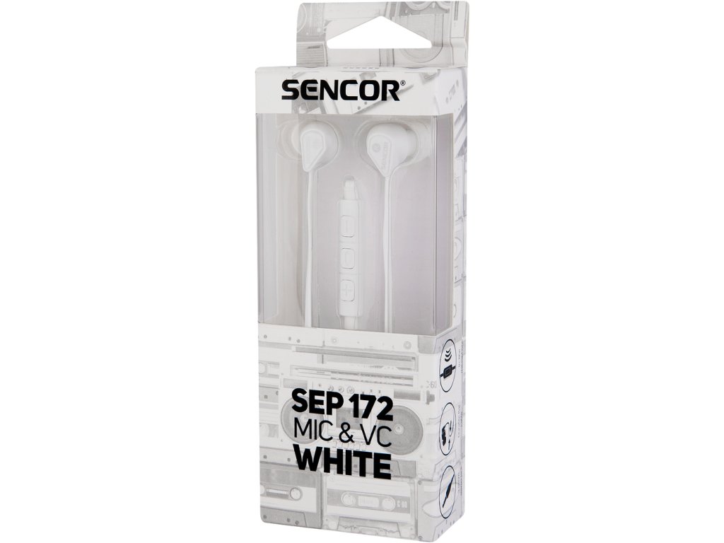 SENCOR SEP 172 VCM sluchátka bílá s mikrofonemSluchátka do uší s mikrofonem a regulací hlasitosti