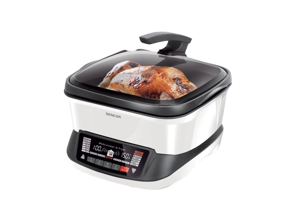 SENCOR SFR 9400WH multifunkční hrnec 4,8l bílýMultifunkční fritovací hrnec s 18 funkcemi, příkon 1 800 W, objem 4,8 l, nepřilnavý povrch, hliník pro rychlý a rovnoměrný rozvod tepla, průhledná poklice, tepelná spirála, LED displej
