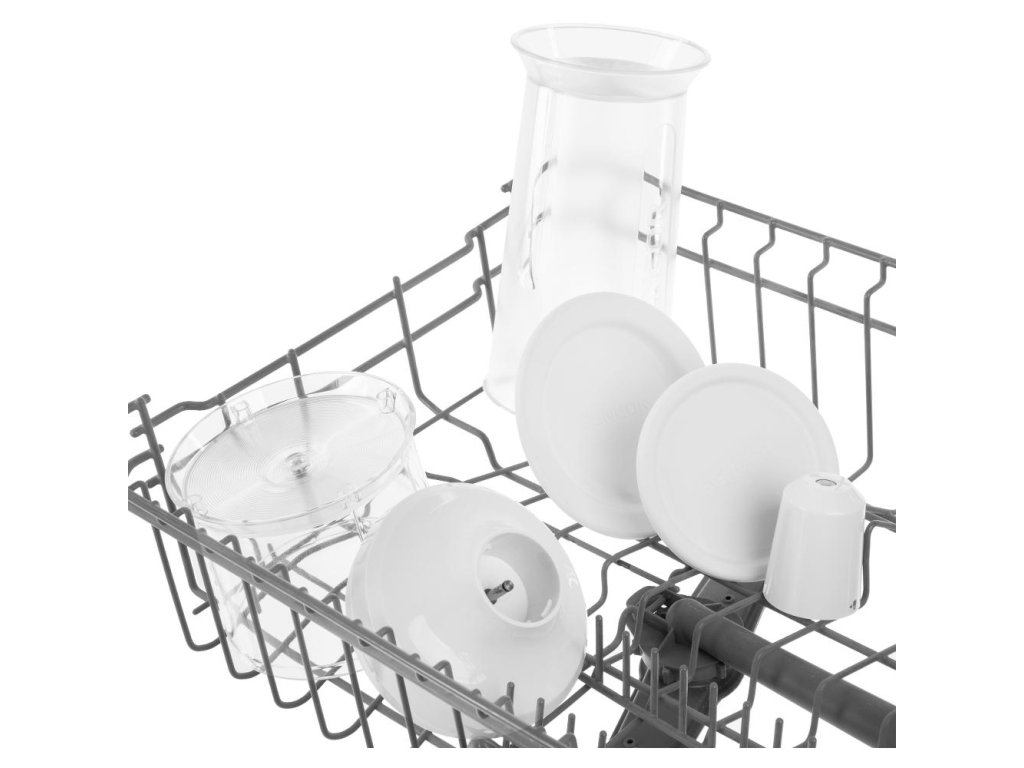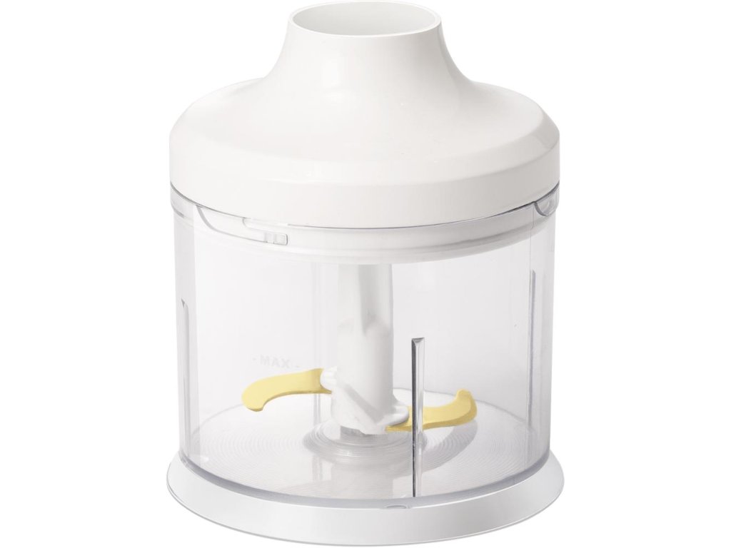 Součástí balení je 700ml mixovací nádoba, 500ml nádoba na sekání, nerezová šlehací metla a protiskluzová podložka.
