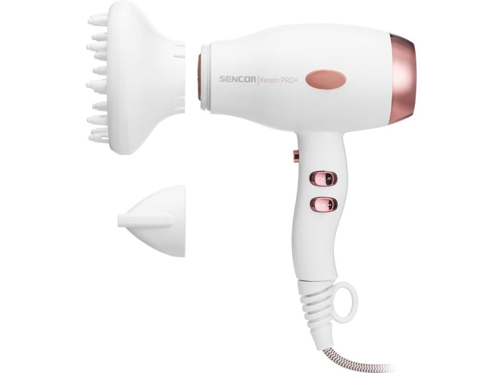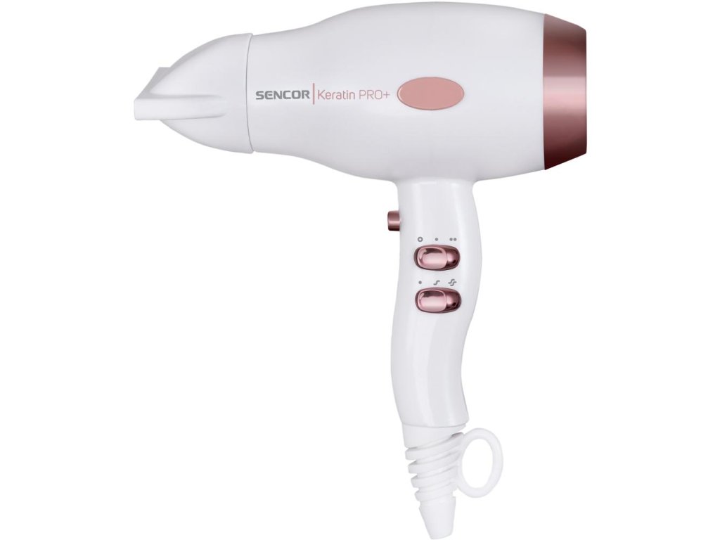 SENCOR SHD 8100GD vysoušeč vlasůVysoušeč vlasů, 3 úrovně nastavení teploty, 2 rychlosti, funkce Cool Shot, funkce True Ionic, závěsné očko, příkon: 2 100 W