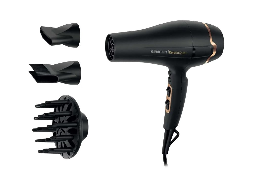 SENCOR SHD 8275BK vysoušeč vlasů 2400WVysoušeč vlasů, 3 teploty + studený vzduch (Cool Shoot), 2 rychlosti + turbo, KeratinCare+, funkce ionizace, ergonomická rukojeť, závěsné očko, tepelná pojistka, příkon 2400W
