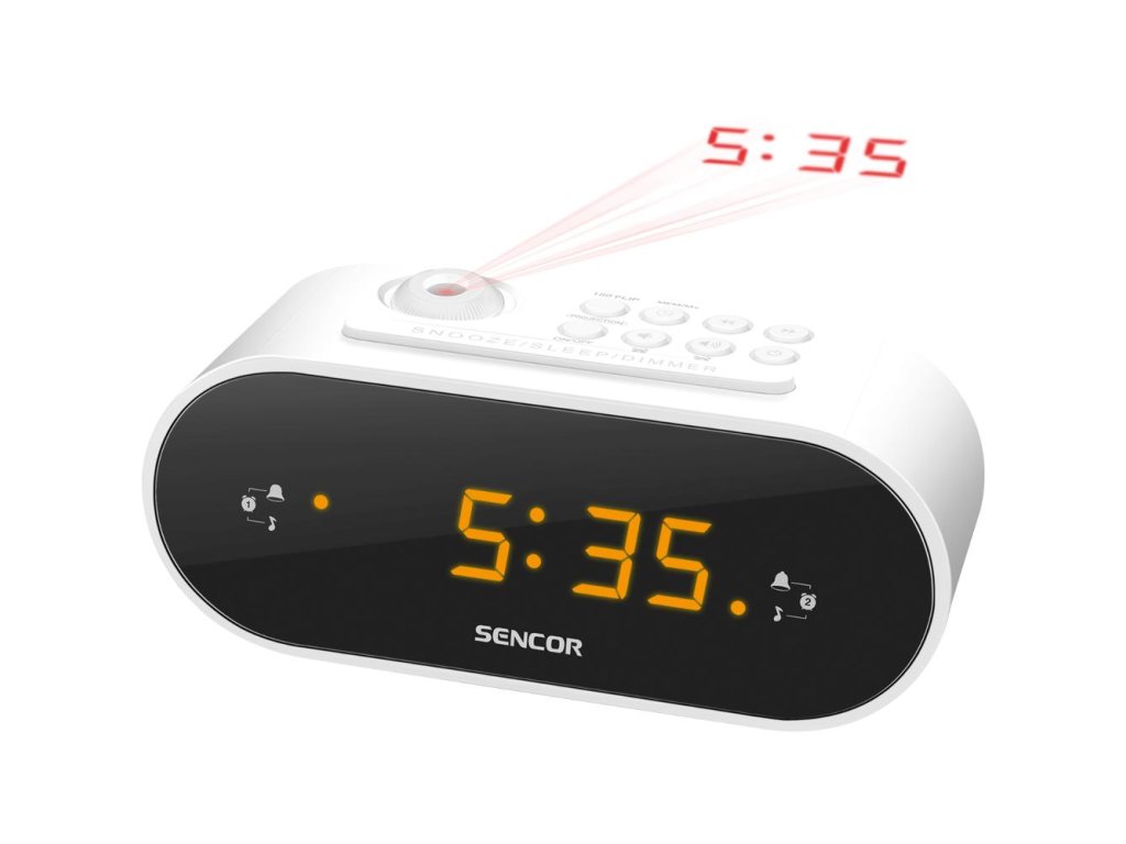 SENCOR SRC 3100 W radiobudík s projekcí bílýPLL FM rádio s 10 předvolbami