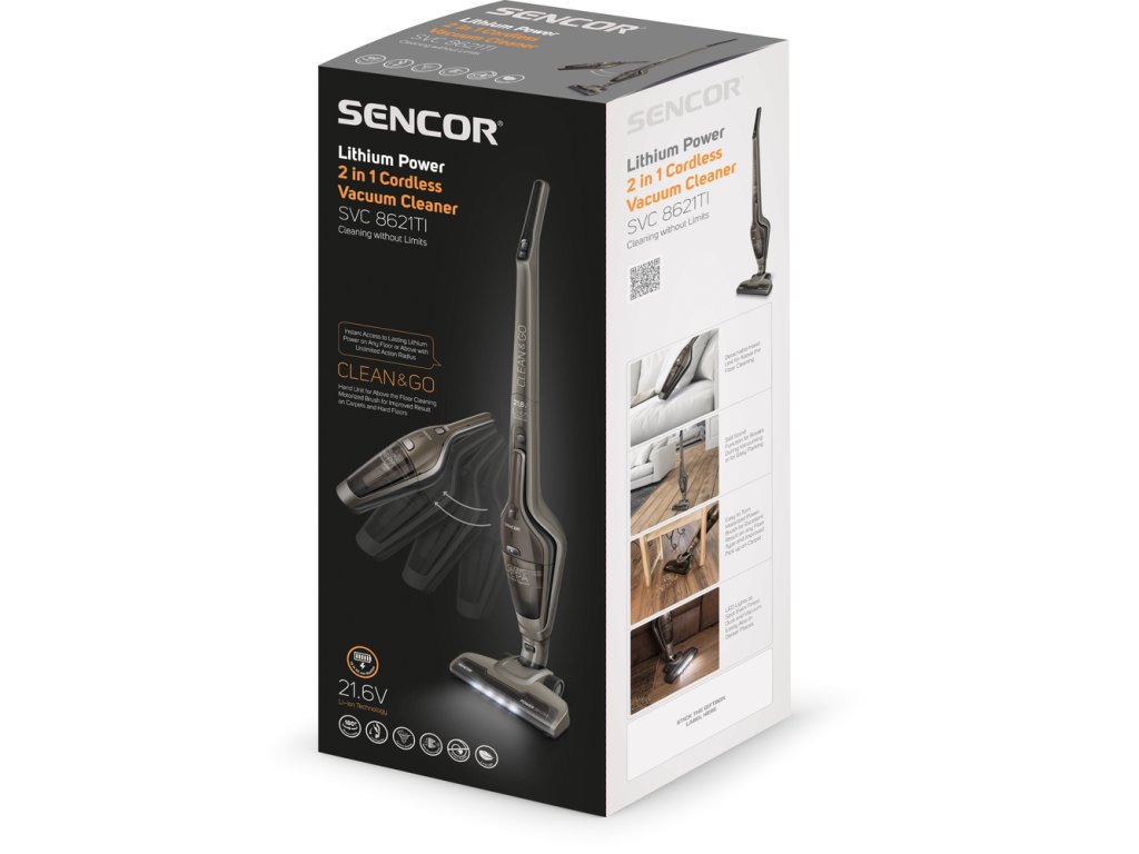 SENCOR SVC 8621TI tyčový vysavač 2v1 AKU titanBezšňůrový tyčový vysavač 2 v 1 s možností vyjmutí ruční jednotky