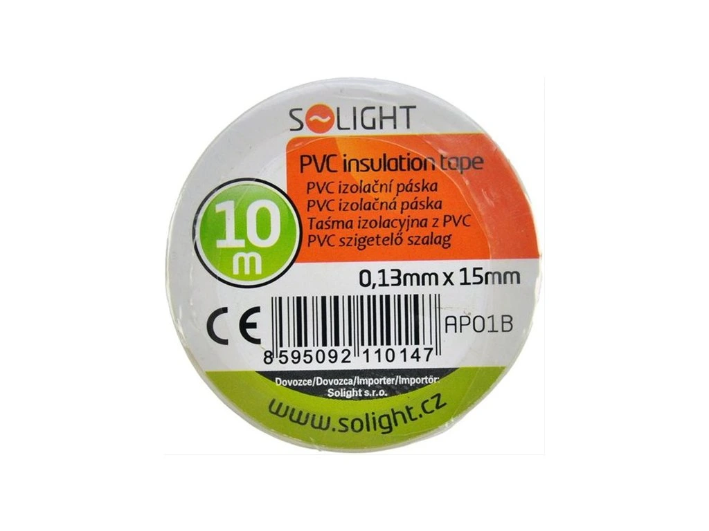 SOLIGHT 15mmx10m AP01B izolační páska bílá- rozměry: 15mm x 0,13mm x 10m
