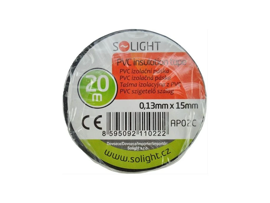 SOLIGHT 15mmx20m AP02C izolační páska černá- rozměry: 15mm x 0,13mm x 20m