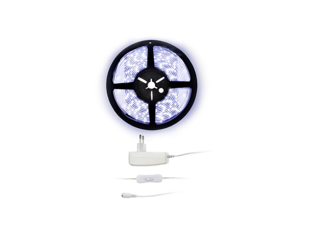 Pásek je zkracovatelný, vybavený samolepicí 3M páskou a má životnost až 50 000 hodin. Napájení zajišťuje adaptér AC 230V / DC 12V (2000mA) s vypínačem. Světelný kužel 120°, CRI > 80 a energetická třída G zaručují vysokou kvalitu osvětlení a úsporný provoz.