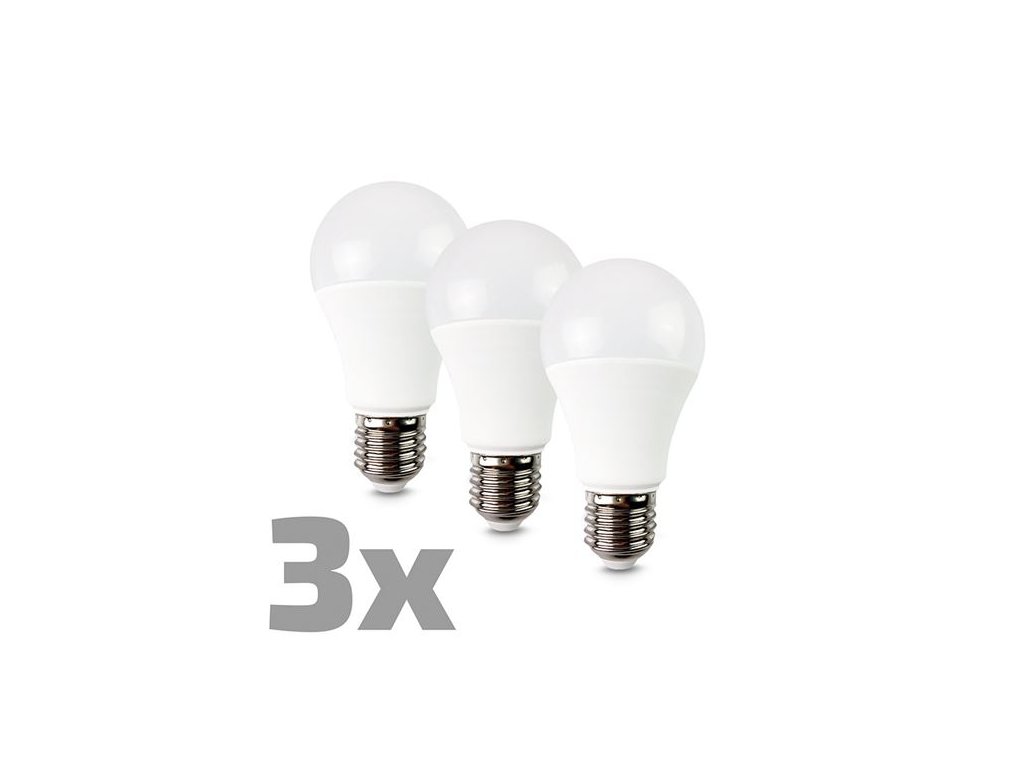 SOLIGHT WZ529-3P LED žár. 3x E27 10W 3K 900lmBalení tří LED žárovek s příkonem 10 W a teplým bílým světlem (3000 K) nabízí jemné a útulné osvětlení pro obývací pokoje, ložnice nebo jídelní prostory. Díky světelnému toku 900 lm a širokému úhlu svícení 270° poskytnou příjemné rozptýlené světlo, které neoslňuje a vytváří pohodovou atmosféru. Ideální volba pro každého, kdo hledá úsporné a přitom příjemné osvětlení do domácnosti. Díky balení po třech kusech snadno vyměníte více žárovek najednou a ušetříte čas i peníze.
