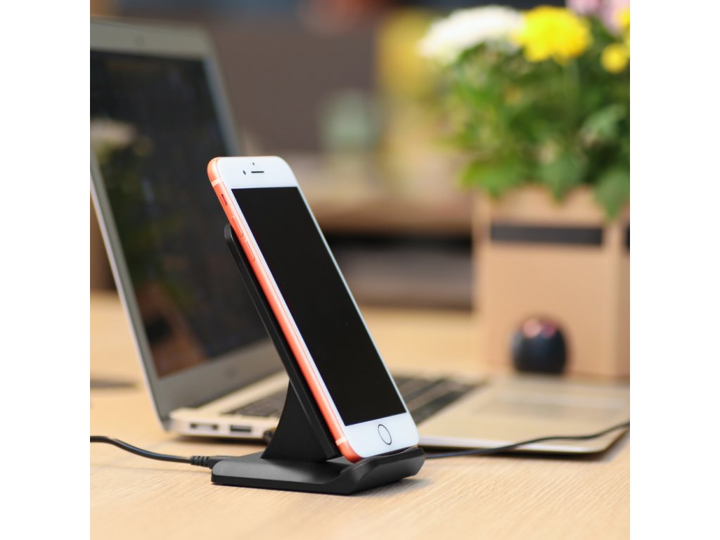 Bezdrátový nabíjecí stojánek dokáže díky dvojité cívce a výstupnímu výkonu až 10 W nabít váš telefon ve vodorovné i svislé poloze.