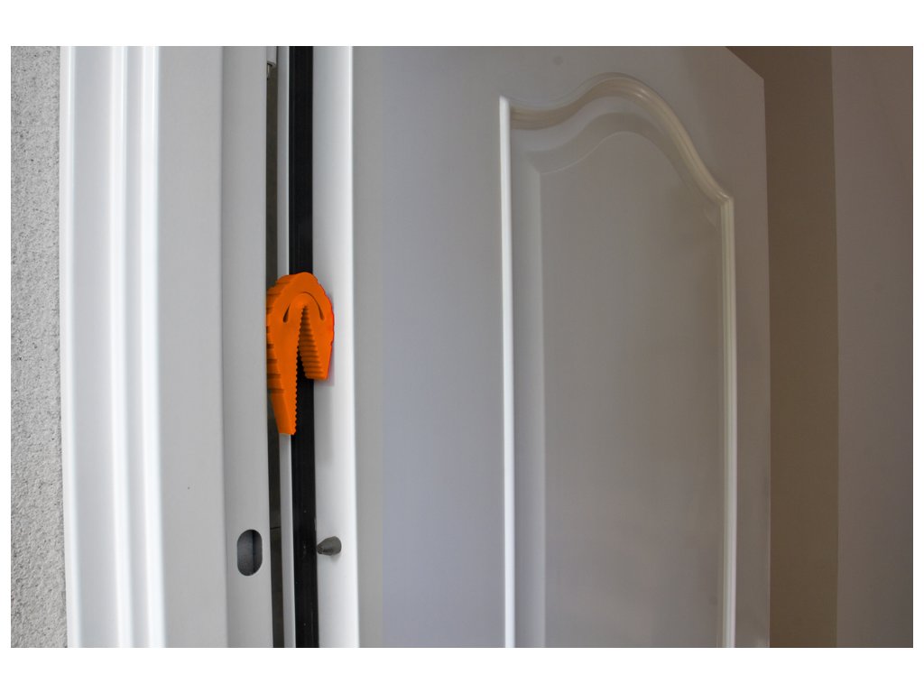 Jeho trojúhelníkový tvar, jeho vnitřní otvor, jeho 3 promáčknuté strany a jeho materiál umožňují jeho umístění do dveří i oken, podle každé potřeby: